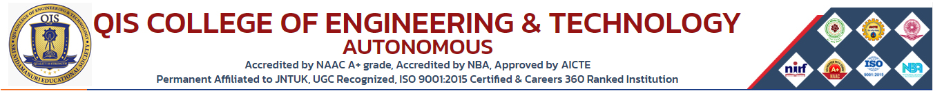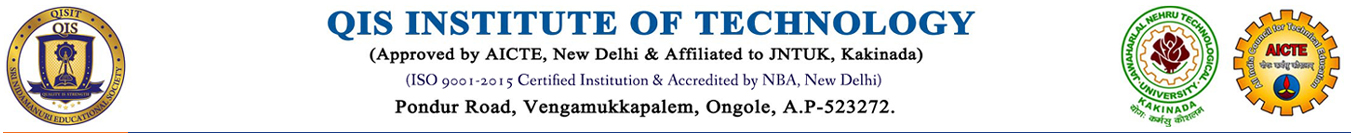 Sri Nidamanuri Educational Society started QIS College of Engineering & Technology established in the year 1998 by Sri Nidamanuri Educational Society, is committed to promote technical education in Prakasam District. The College is affiliated to J.N.T. University, Kakinada. This College offers B.Tech program with ECE, EEE, CSE, IT, CSEBS, CSEDS, AI, AIDS, AIML, CSEIT, CSEIOT, CE and Mechanical Engineering. This Society started another Engineering College with the name of QIS Institute of Technology at Vengamukkapalem in Ongole. The management introduced QIS College of Pharmacy and offers B.Pharm course , M.Pharm (Pharmaceutics) and M.Pharm (Pharmaceutical Analysis & Quality Assurance) to materialize as the dreams of aspiring students and parents.